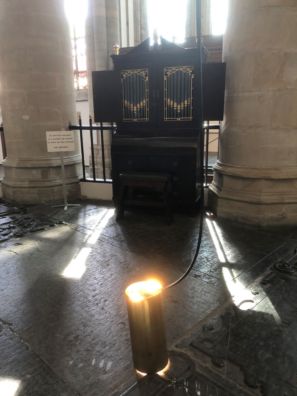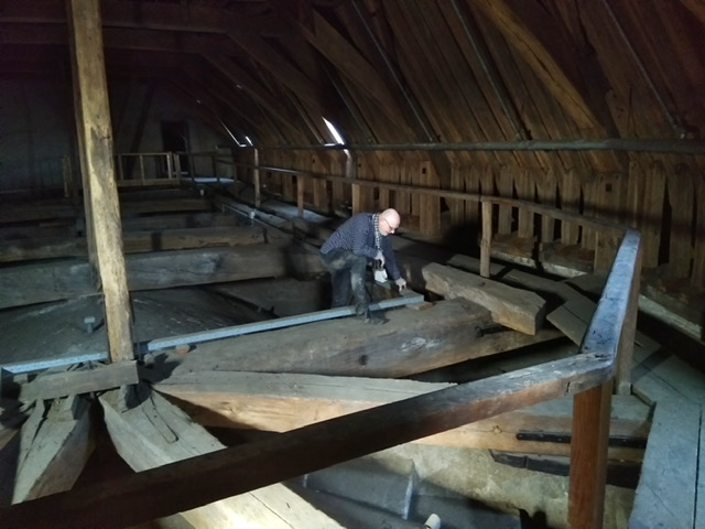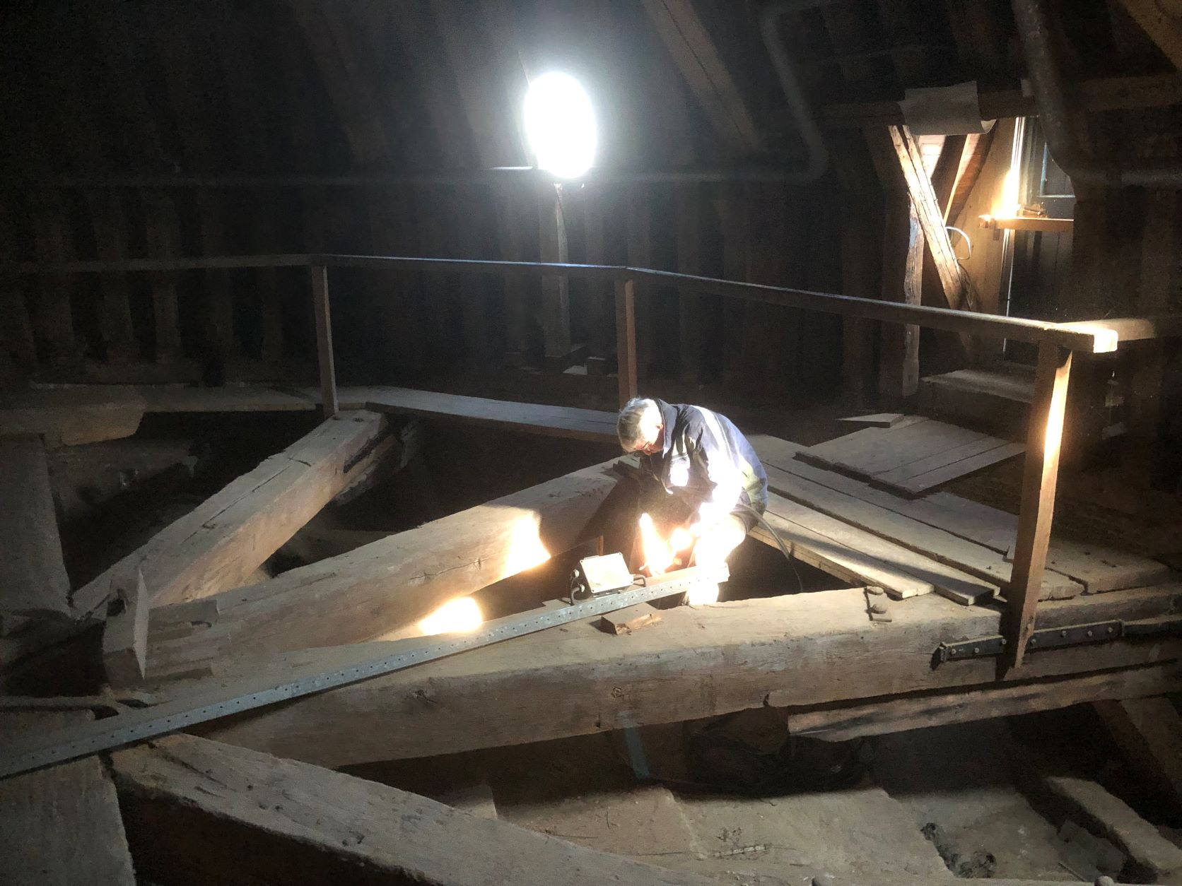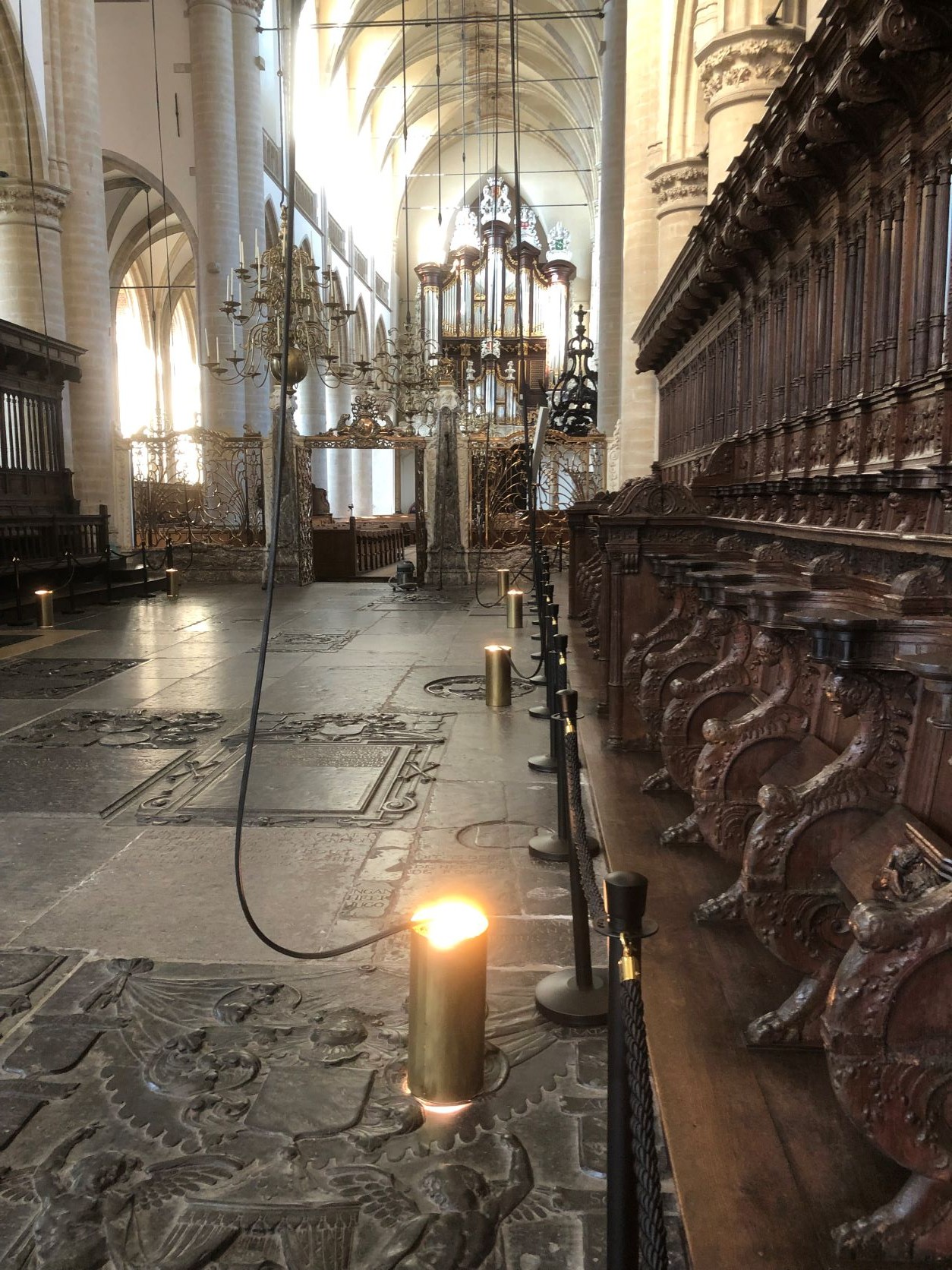 Alle 26 gaslampen in de kooromgang en hoogkoor zijn afgelopen weken vervangen. Dat vraagt het nodige klim en klauterwerk boven op de gewelven. Vervolgens de lampen laten zakken, nieuwe lampen er in en de lampen weer ophijsen.