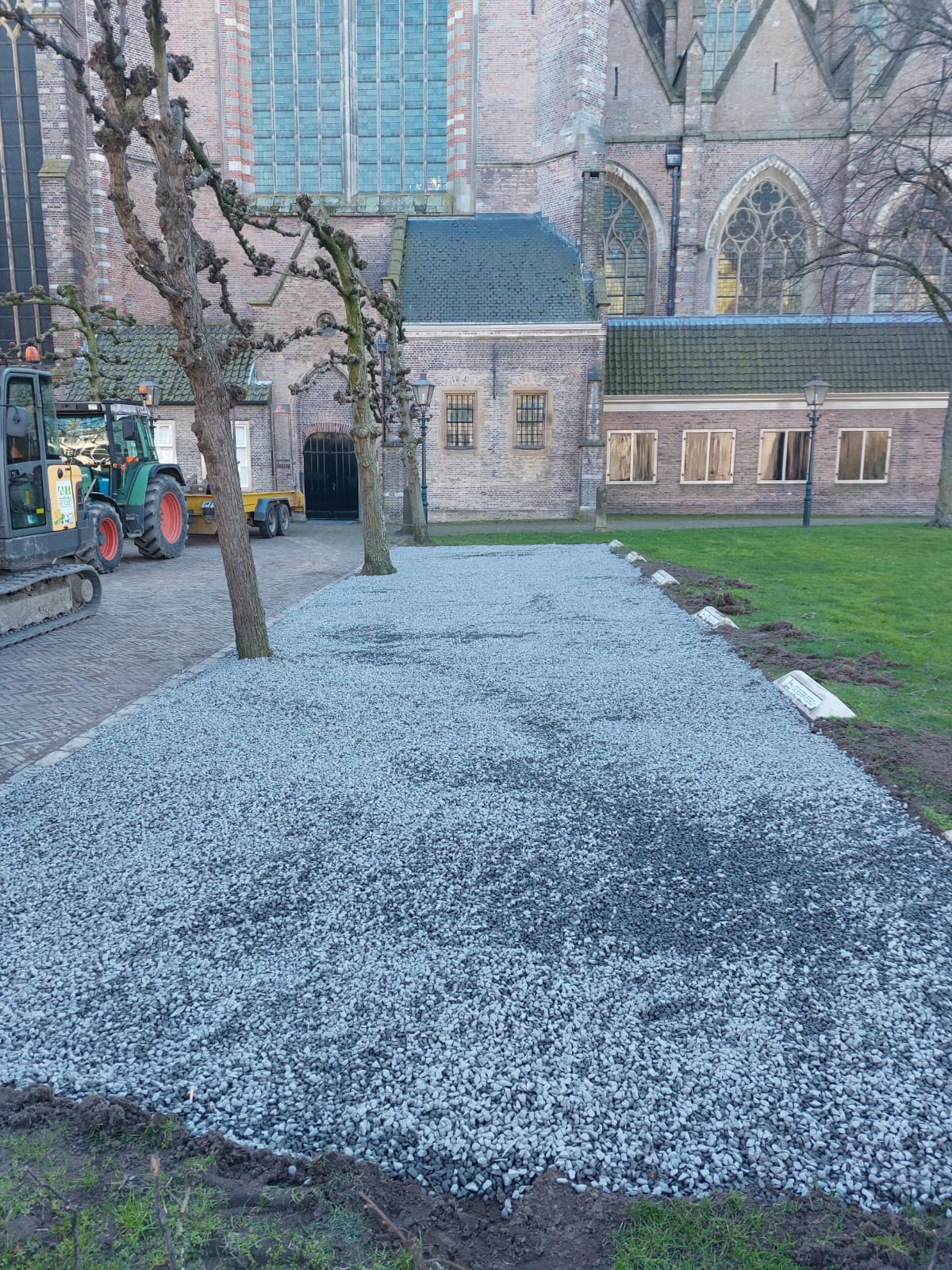Alles plekken zijn keurig verstevigd en voorzien van een nieuwe laag kiezels door een Hoveniersbedrijf All Green. Met groot materieel is deze klus weer geklaard.