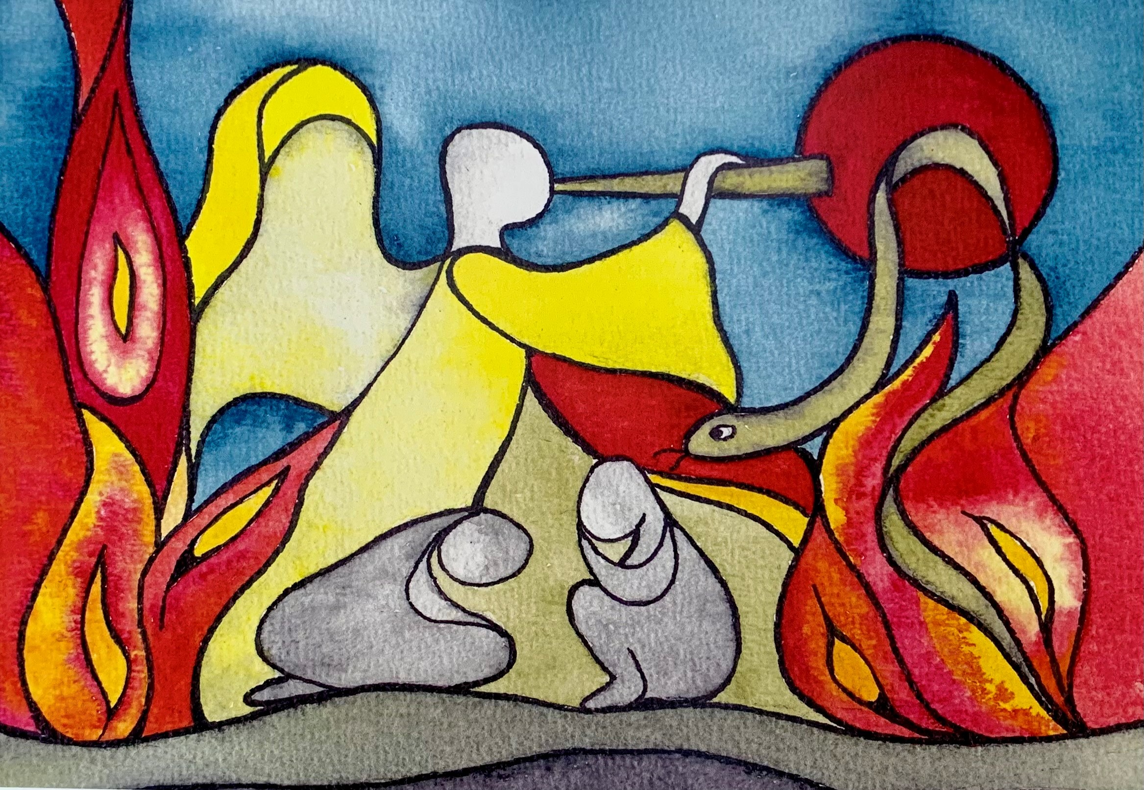 Haar aquarellen zijn teer van kleur. De acrylwerken zijn juist sterk van kleur en lijn.