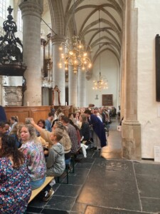 Het door Nobels jaarlijks georganiseerde pinksterontbijt viel bijna in het water door het slechte weer. Gelukkig konden wij als Grote Kerk en als buren de honderden deelnemers een dak boven het het hoofd bieden, zodat het ontbijt toch door kon gaan. Het ontbijt stond in het teken van een goed doel n.l.: het Dordtse Kindertheater Marjolein. Met de opbrengst zal het Kindertheater Marjolein op elf minder kansrijke basisscholen, aangemerkt in het Dordtse Leerplan, een voorstelling brengen van poppenkasttheater Jacobus Wieman.