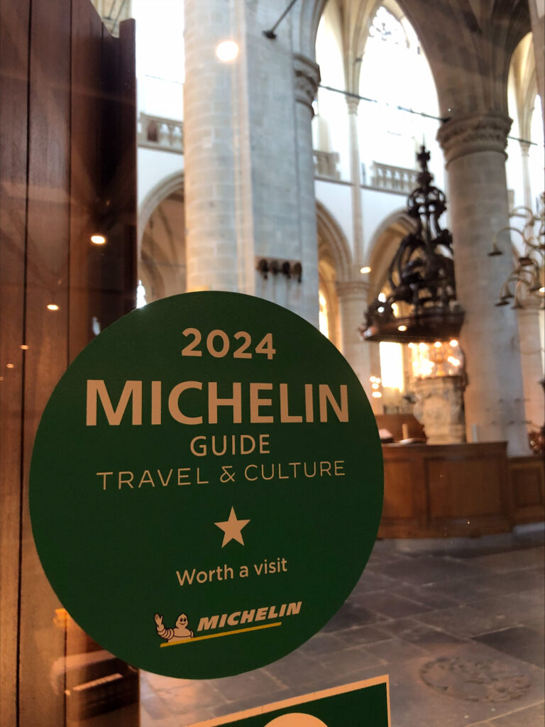 De Grote Kerk als toeristische attractie heeft een Michelinster gekregen. Daar mogen we met alle vrijwilligers trots op zijn! Natuurlijk gaat het hier niet om de categorie eten, maar wel om een plek ‘die een bezoek waard is’, zoals de gerenommeerde reisgids schrijft. De Michelin Reisgids kende voor 2024 een ster toe aan de Onze Lieve Vrouwekerk, maar ook Huis van Gijn en Nationaal Park de Biesbosch kregen die waardering.