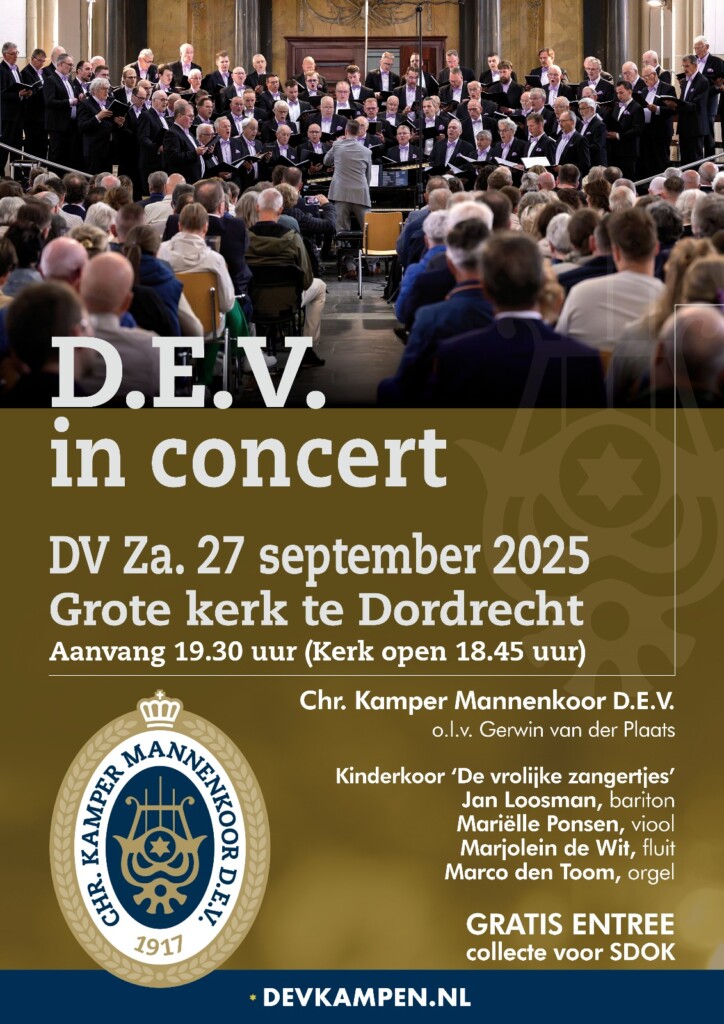 D.E.V. in Concert Chr. Kamper Mannenkoor D.E.V. o.l.v. Gerwin van der Plaats. 27 september 2025 19.30 uur