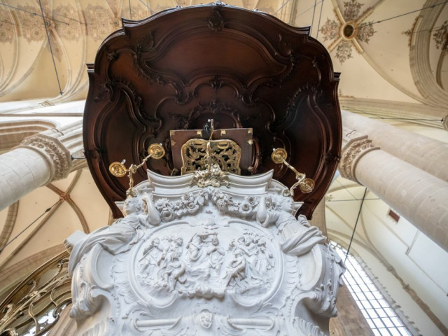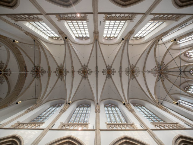 Waarschijnlijk is dit een afbeelding van de biddende koning David. Helemaal zeker is dat niet, maar daar gaat het me nu niet om. Een biddende figuur op de afbeeldingen in het hoogkoor. Juist in deze tijd leren we opnieuw het belang van gebed.